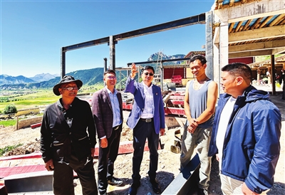 天津援藏队卡若区工作组在天津援建的嘎玛乡美丽乡村民宿项目推动工作。