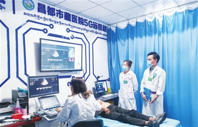 天津援藏医疗队利用5G彩超远程会诊,为昌都市肿瘤患者诊断、制定诊疗方案。