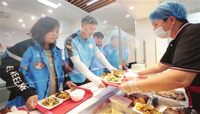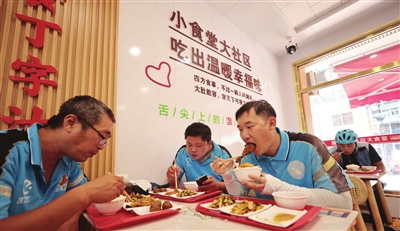 为认真学习贯彻习近平总书记关于新就业形态劳动者、平台经济的重要指示批示精神,落实全总“559”工作部署,结合全国总工会“爱新餐”专项工作的启动,日前,红桥区总工会联合各街道总工会开展工会“爱新餐”城市点亮行动,扎实推进新就业形态劳动者维权服务三年行动,依托街道老人家食堂、社区惠民食堂以及爱心商户,协调多方力量资源,提供优惠餐,让外卖骑手、环卫工人、货车司机等新就业形态劳动者不再为“就餐难、就餐贵”问题发愁。 朱双银 摄影报道