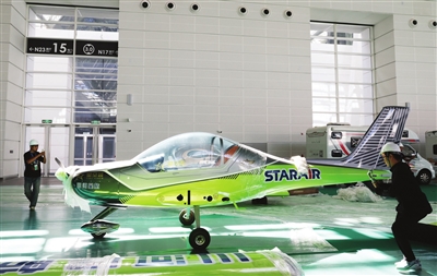 现场探营记者拍摄采访户外装备馆飞行器装备。