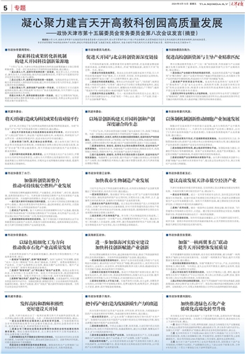 编者按:9月12日,政协天津市第十五届委员会常务委员会第八次会议召开,深入学习贯彻中共二十届三中全会精神,扎实贯彻落实习近平总书记视察天津重要讲话精神,组织政协委员、专家学者等围绕“加快科技创新和产业创新,推进天开园高质量发展”主题建言献策、凝聚共识,为奋力谱写中国式现代化天津篇章贡献力量。现将部分会议发言摘登如下。