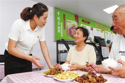 居民李大娘感慨:“早晨在活动中心唱完歌下楼就吃饭,真是太幸福了!”
