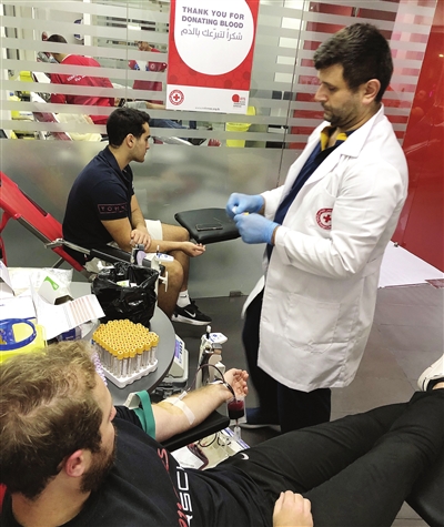 9月17日,在黎巴嫩贝鲁特,人们为传呼设备爆炸事件伤者献血。 新华社发
