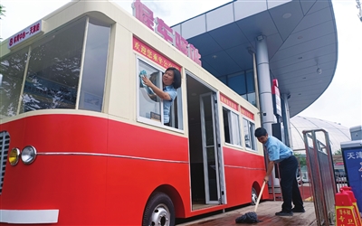 体育中心场站已投入运营17年,是南开区重要的公交枢纽站,但站点路面和设施已出现一定程度老化。为提升公交服务品质,增加乘客幸福感和获得感,车队征询各方意见,融入现代化枢纽站设计理念,添加人性化配套服务设施,打造出全新8路体育中心公交场站。全新打造的候车驿站约25平方米,外观为公交车样式,内设候车凳、电视、线路导乘信息牌,并增加照明系统,驿站内还准备了爱心雨伞供乘客免费借用。站区还规划建设了休闲区域,环绕场院建筑铺设地胶地面,并新规划绿地草坪,增设全新标准羽毛球场。