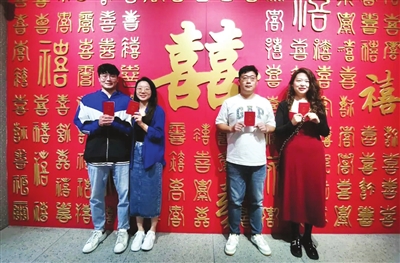 为推动婚俗改革,各区立足区位特色开办个性化婚姻登记点。图为南开区民政局天开园婚姻登记处为群众提供结婚登记、颁证等服务。