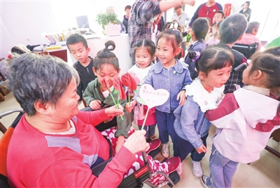 尊老爱老是中华民族的传统美德,在重阳节到来之际,红桥区咸阳北路街道幸福社区携手聚星幼儿园,孩子们走进辖区桃花源养老院,为爷爷奶奶带来精心准备的歌舞节目和亲手制作的礼物,为他们送上温暖和祝福。