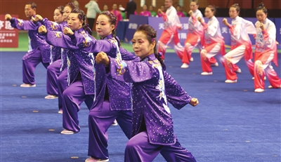 本报讯(记者 梁斌 摄影 崔跃勇)由国家体育总局健身气功管理中心、中国健身气功协会、天津市体育局、天津市静海区人民政府主办,天津市体育竞赛和社会体育事务中心、天津市静海区体育局、天津市健身气功协会、天津仁爱学院承办的第十五届全运会健身气功分区赛(北部赛区)暨段位积分赛昨天在天津仁爱学院体育馆开赛。