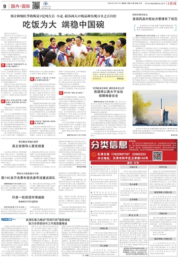 作为我国粮食领域第一部基础性、统领性法律,粮食安全保障法今年6月1日起正式施行,对耕地保护到粮食生产、储备、流通、加工各环节以及粮食应急、节约减损等作了系统规定,为全方位夯实国家粮食安全根基提供了法治保障。