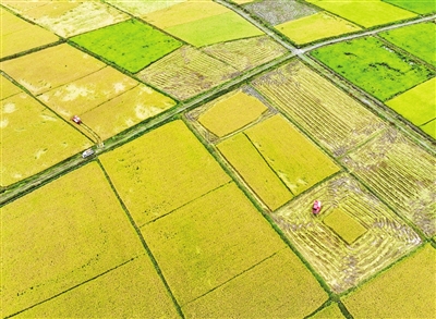 图为在湖南省永州市道县梅花镇棠下村,农民驾驶农机收割晚稻。