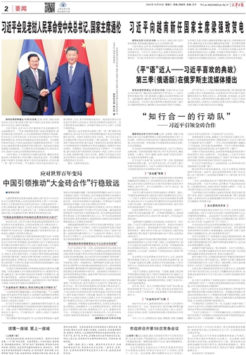 习近平指出,去年10月,我们就深化中老全面战略合作达成重要共识。一年来,两党两国各部门各地方积极落实,推动互联互通、经贸投资、人文交流等领域合作取得丰硕成果。作为社会主义同志加兄弟,中老关系在中国周边外交中具有特殊重要位置,始终走在构建命运共同体的前列。无论国际形势如何变化,中国永远是老挝可信赖的朋友和伙伴。中国正在以高质量发展全面推进中国式现代化,老挝也处在国家发展振兴的新阶段。中方愿同老方巩固战略互信,深化务实合作,推动中老命运共同体建设持续走深走实。