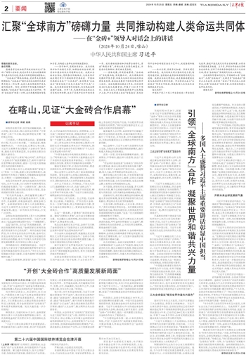 “全球南方”群体性崛起,是世界大变局的鲜明标志。“全球南方”国家共同迈向现代化是世界历史上一件大事,也是人类文明进程中史无前例的壮举。同时,世界和平和发展仍面临严峻挑战,“全球南方”振兴之路注定不会平坦。作为“全球南方”的第一方阵,我们要展现集体智慧和力量,为构建人类命运共同体挺膺担当。