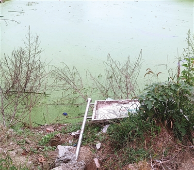 记者近日在现场看到,这片坑塘位于沙高路旁,紧邻坑塘的人行道边缘坍塌,严重的地方,几乎半边人行道塌方,长约两三米。