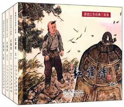 (注:“梁斌红色经典三部曲”连环画2014年由天津人民美术出版社出版,共10册,其中《红旗谱》4册、《播火记》3册、《烽烟图》3册。)