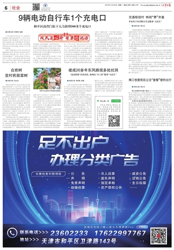 南营门街道老旧小区多,加之和平区道路相对比较窄,停车难,电动自行车成了居民们的主要交通工具。近几年,各个小区也陆续建成了一些充电设施,但总体上充电口比较少,难以满足居民的充电需求。“大家不得不选择飞线充电、拎电池进楼或者推车上楼充电。各个小区都存在这样的情况,有安全隐患。”市民告诉记者,一些老旧小区存车棚缺少维护,存在不同程度破损,车棚内弃用自行车很多,既占用小区公共空间又影响正常使用车辆的停放。希望有关部门对存车棚进行全面改造,增加充电设施,并加强管理。