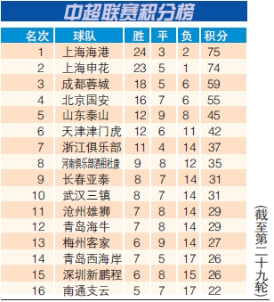中超联赛积分榜