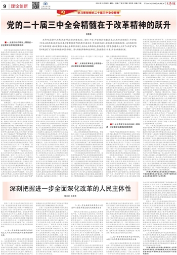人民主体性内蕴着人民不仅是改革实践的主体和改革成果的享有者,更是改革成效的检验者。进一步全面深化改革坚持以人民为中心推进中国式现代化,把满足人民群众对美好生活的多元化多层次需要作为根本出发点和最终落脚点,使人的主体性建设具有更加深邃的时代意蕴,彰显出更加深远的时代价值。