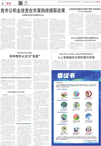 本报讯(记者 陈璠)为支持缴存职工解决基本住房问题,助力京津冀协同发展,结合我市实际,天津市住房公积金管理中心发布《关于调整住房公积金有关政策的通知》(以下简称《通知》),自2024年10月29日起施行,有效期5年。