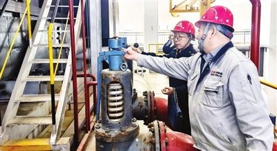 河东区市场监管局执法人员深入辖区供热站开展特种设备安全和锅炉计量器具定期检定情况检查。图为市场监管局工作人员对丽苑供热站进行检查。