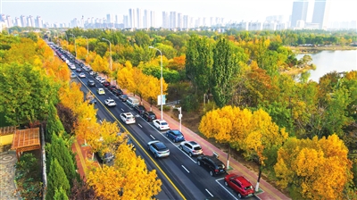 深秋时节,位于西青区的梅江公园景色宜人,仿佛一幅色彩斑斓的画卷。 本报记者 潘立峰 摄