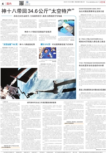新华社北京11月4日电(记者 张泉)记者从中国科学院空间应用工程与技术中心获悉,中国空间站第七批空间科学实验样品11月4日随神舟十八号载人飞船返回舱顺利返回。