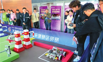 日前,2024年华北五省(市、自治区)大学生机器人大赛天津赛区暨第八届天津市大学生机器人大赛在天津工业大学举行,来自天大、南开、工大、理工等20余所高校的约600名师生,参加了智能机器人无人驾驶、类人机器人竞技体育等9大类17个小项的比赛。 本报记者 姜宝成 摄