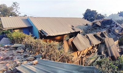 图为11月4日在印度尼西亚东努沙登加拉省东弗洛勒斯县勒沃托比火山附近拍摄的受损房屋。