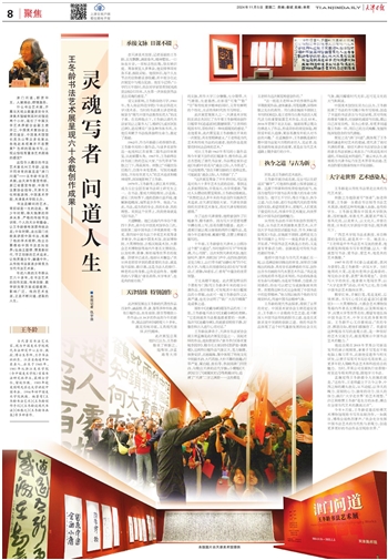 “这次展览筹备了半年多时间,可以说是对我六十多年艺术生涯的总结。看到这么多新朋故知,非常高兴,也非常感谢。”面对人头攒动的展览现场,王冬龄动情地说,“我想把这么多年来的书法创作实践和艺术追求,在天津呈现给大家。天津有我敬仰的先贤和艺术挚友,我对天津有特别的感情。”