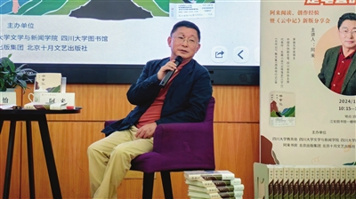 近日,“愿你面前的道路是笔直的——阿来阅读、创作经验暨《云中记》新版分享会”在四川大学江安图书馆举行。2019年,《云中记》由北京十月文艺出版社首度出版,荣获中宣部“五个一工程”奖、中国出版政府奖等奖项。2024年,《云中记》出版五周年之际,阿来新增后记文章《写出光芒来》,再度由北京十月文艺出版社推出全新修订版。分享会现场,阿来讲述了这部小说的创作缘起、自己的创作标准以及对汉语写作的追求。谈到《云中记》,他说:“我对自己的每本书都有点小遗憾,但这本书我可以给自己打满分。”