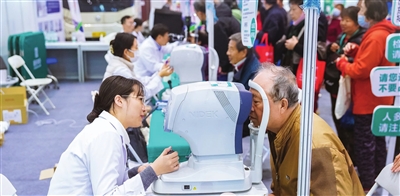 市眼科医院视光中心日前参加了“京津冀都市重阳博览会”系列公益活动。活动期间,视光中心团队在场内设立了基础验光检查、裂隙灯眼前节检查、眼压测量、眼底照相、医师咨询以及眼镜调整等项目。一支由资深眼科专家和专业视光师、加工师组成的服务团队,为前来咨询和检查的老年人提供了全面的眼健康服务。 通讯员 权贺