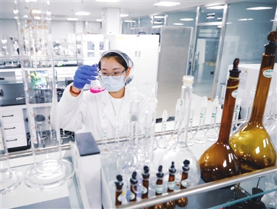 元气森林检测实验室工作人员正在对产品进行出厂质量检测。
