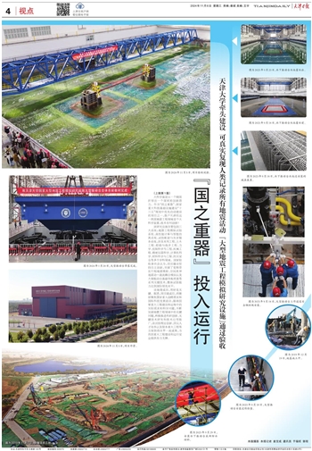 本报讯(记者 姜凝)11月5日,由天津大学牵头在天津建设的我国地震工程领域首个国家重大科技基础设施项目“大型地震工程模拟研究设施”通过国家验收,正式投入运行。这是我国地震工程领域首个“国之重器”,能为重大工程抵御自然灾害、减轻灾害风险提供极限研究手段,可大幅提升我国工程技术领域的原始创新能力和技术水平,为保障重大工程安全提供技术支撑。