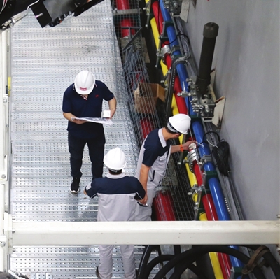 图为2023年9月18日,大型振动台工作通道安全钢丝绳安装。