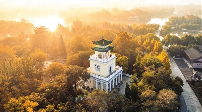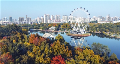 深秋时节,俯瞰津城大地,橙黄橘绿,秋意正浓。