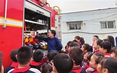 近日,在全国消防日即将来临之际,北辰区杨嘴小学联合红桥消防救援站开展“消防车进校园”消防安全科普活动。活动中,消防员用浅显易懂的语言讲解消防知识,学生们近距离感受“火焰蓝”魅力。活动最后,还进行了消防应急疏散演练。 通讯员 玄志丹 摄