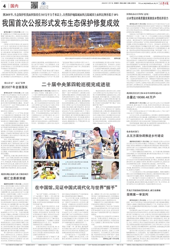 《国家生态保护修复公报2024》共4.7万余字,包括国家生态保护修复实践、国家生态保护修复制度、国土空间自然生态评价、国土空间生态保护修复行动、绿色地球中国贡献等内容。自然资源部国土空间生态修复司司长王磊说,首次以公报形式全面反映生态保护修复工作,目的是集成发布我国陆海一体的自然生态基本国情,总结反映国家生态保护修复工作成效,充分展示我国生态文明建设取得的重要成就,全面体现生态保护修复在人与自然和谐共生的美丽中国建设中的重要作用。