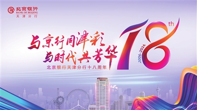 年轮上的十八个刻度,见证着北京银行天津分行的成长,是对往昔奋斗的深情回望,是对无悔青春的热情诠释。十八年前,从运河之畔到海河之滨,北京银行天津分行带着金融使命担当应运而生,用一颗赤诚之心扎根津沽大地。十八年来,天津分行向下扎根,向上生长,始终坚守发展初心,以实际行动践行社会责任,以做好金融“五篇大文章”为方向,不断刷新服务实体经济的成绩。成立以来,北京银行天津分行累计为天津地区提供资金支持超6000亿元,累计纳税29.83亿元,书写着属于北京银行天津分行的京彩篇章。