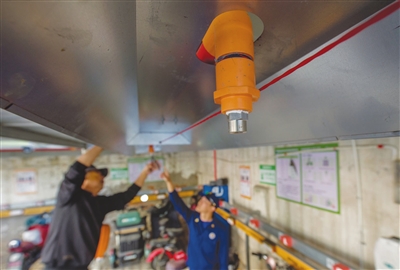 目前,部分小区在电动自行车充电车棚内加装了自动灭火设施,当出现火情时,该系统可通过高温感应启动自动喷淋,降低火灾蔓延速度,遏制火势发展。