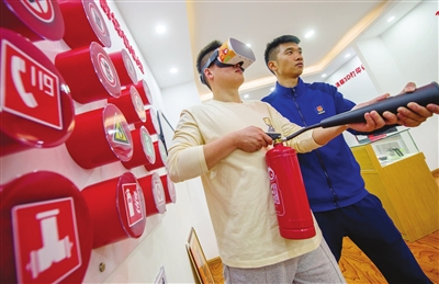 居民在延安路消防站参与VR体验,在虚拟场景中,人们能够真实感受到火灾的凶险,这种身临其境的体验更能增强人们的消防安全意识。