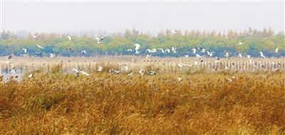 日前,我市七里海湿地迎来候鸟季,成群结队的候鸟或觅食嬉戏,或展翅翱翔,一片生机勃勃的景象。 本报记者 孙立伟 通讯员 王志臣 摄
