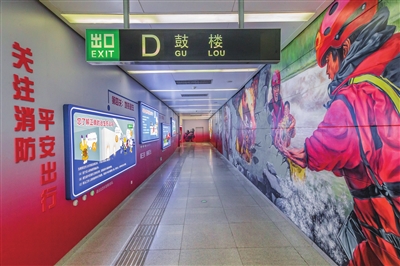 为了让消防常识入脑入心,活动结束后,学生们参观了鼓楼站消防主题车站。天津地铁2号线消防主题车站是在消防救援总队轨道交通支队的指导下结合当下热点流行元素打造的,在凸显“烈火青春 驻守平安”主题的基础上,以40余平方米3D手绘立体画文化墙的强烈代入感和冲击力,展现消防指战员在抗洪抢险、灭火救援、社会救助中的写实画面场景,激发市民对火焰蓝的尊崇。电动车火灾试验后的燃烧残骸和现场过火照片,配合循环滚动播放的电动车火灾事故案例视频,给同学们留下了深刻的印象,警示大家规范使用电动车,杜绝火灾隐患。随后,学生们进行了消防虚拟报警互动游戏、密室逃脱、消防出警、油锅灭火、地铁逃生闯关答题等互动体验环节,充分调动起同学们关注消防、参与消防的积极性,将现场气氛推向了一个小高潮,在寓教于乐中提升学生们的消防安全素质。