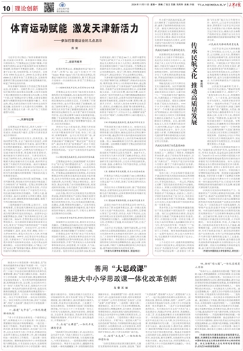 习近平总书记强调:“新时代新征程,以中国式现代化全面推进强国建设、民族复兴伟业,必将为我国体育事业发展提供更好条件、注入强劲动力。”大型体育赛事是城市活力、创新力和文化魅力的集中展示。我们要结合天津特色,打造具有国际影响力的体育品牌赛事活动,通过办赛、培育城市品牌,不断扩大赛事品牌的影响力和价值功能,提升城市的国际知名度和美誉度。