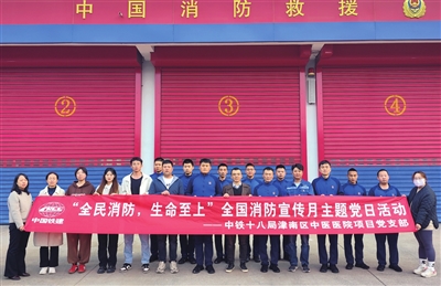近日,中铁十八局津南区中医院项目部开展了“全民消防,生命至上”全国消防宣传月主题党日活动。项目部党支部走进津南区津沽路消防救援站进行现场观摩,并参与了消防安全知识讲座。通过活动,进一步增强了党员干部的消防安全意识,提升了火灾防控能力。 董越文
