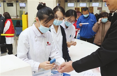 天津医科大学朱宪彝纪念医院举行了糖尿病大型义诊,现场为市民免费测血糖。