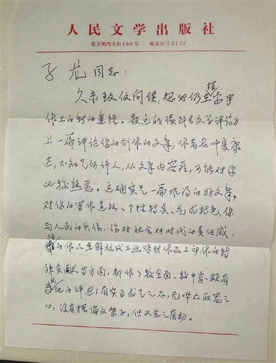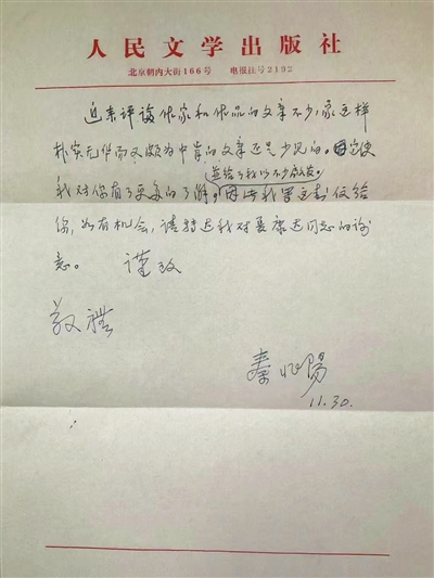 近来评论作家和作品的文章不少,像这样朴实无华而又颇为中肯的文章还是少见的。它使我对你有了更多的了解,并给了我以不少启发。因此我写这封信给你,如有机会,请转达我对夏康达同志的谢意。