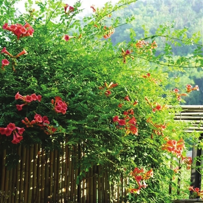 老房子,在它周围种花。一株茑萝,绿草红花攀附在青砖老墙上,看上去怡情。这有些破败的砖墙,立马便显出生气。