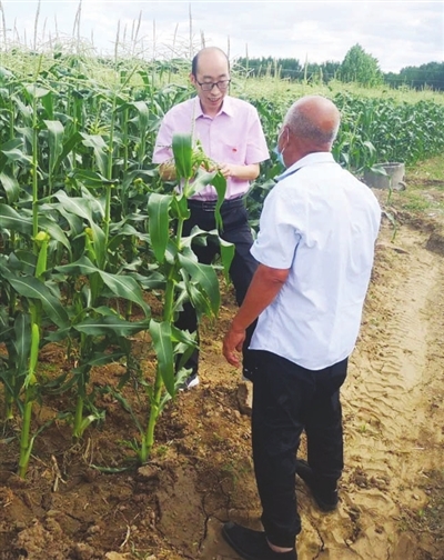 天津市农业科学院专家李明悦到陈咀镇李场村为种植能手讲解鲜食玉米减施增效技术。(资料片)