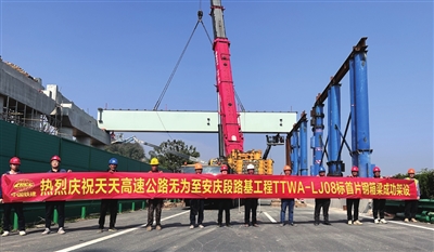 11月12日,由驻津央企中国铁建大桥局参建的天天高速公路项目首片钢箱梁在会宫枢纽主线桥成功架设,项目建设进入桥梁架设施工阶段。工程建成后,将进一步完善沿江综合立体交通走廊,对长江经济带国家战略实施具有重要意义。