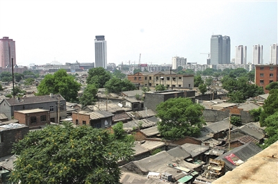 都市里的“村庄”——这是拍摄于2003年6月的一张老照片:位于天津市南开区老城厢简陋的老平房居民区,远处是南开区曾经的地标式建筑——天津商场,二者仅有一街之隔。当年,尽快跳出这块“三级跳坑”成为当地百姓几辈人的“翘首以盼”