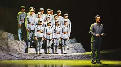 这个红色故事,天津人民艺术剧院讲得扣人心弦。剧中有激荡人心的情节,也有轻松活泼的桥段,令人感受到中国共产党人的初心和使命。舞台中央的装置宛如一页页灵动乐谱,又恰似一面面飘扬旗帜,昭示着剧中人物谱写的壮丽乐章以及高擎的信仰旗帜。