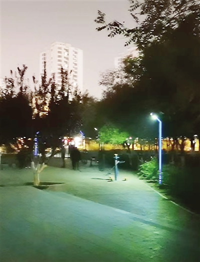 刘女士反映,西青区中北镇叶子公园每天19时到21时都有固定群体在里面锻炼,因为公园里绿植多,还有主题活动区、儿童嬉戏区等,吸引着不同年龄段的人。最近天气渐冷,天也黑得早,大家发现公园里总是昏昏暗暗的,路灯光线比较弱。“有的人自己带手电筒过去,不然看不清路。”